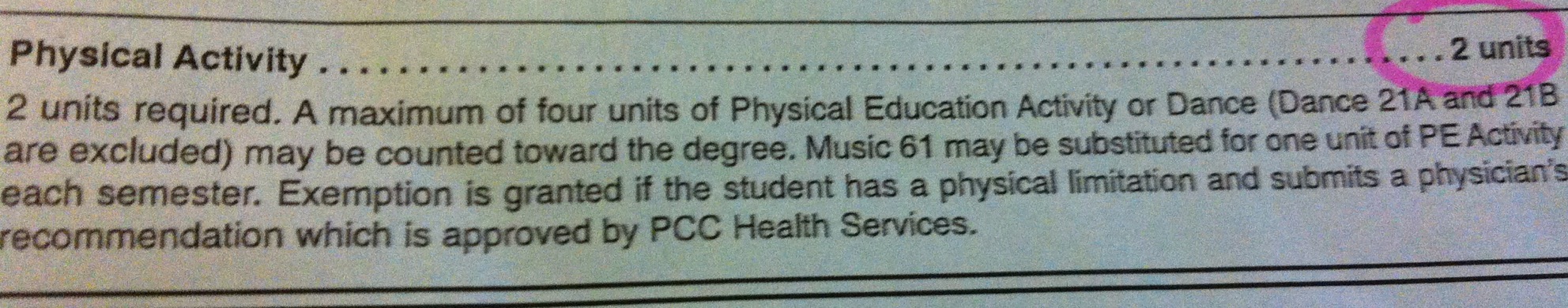 Granted, I had not registered for the math class yet (I was crashing the Survey of Math Ideas class and thankfully got in), but WTF. Why didn’t my dance class count? I used the information provided by the counseling department to choose the classes I needed to graduate. IN FACT: