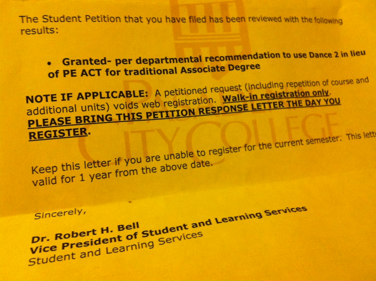 I did the next best thing and went to the division dean of performing arts. After a few minutes, I told him the situation and all he could offer as a means of consolation was a petition to the dean of instruction. He gave me a green slip that I filled out and he cosigned it. I went back to the counseling department where the dean’s office was and delivered the petition. My attempts to alleviate the situation and restore my sanity didn’t end there. I aired out my grievance to one of the student representatives of PCC and also talked to the news editor of the newspaper I used to write for – who coincidentally had an interview with the dean of counseling (you see how I planned that?).
