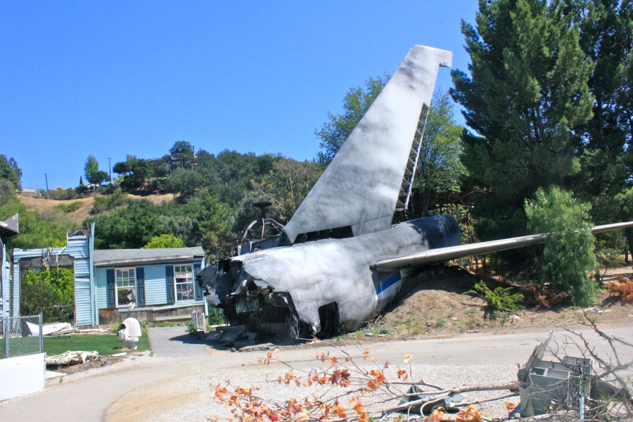 The tram operator said that they had to paint the tail of the plane because planes passing by would radio in for a downed plane.