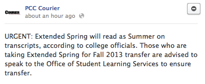 Just so you understand the gravity of the situation, some universities do not accept summer units for transfer and because of that, students might have to spend another semester or two at PCC.