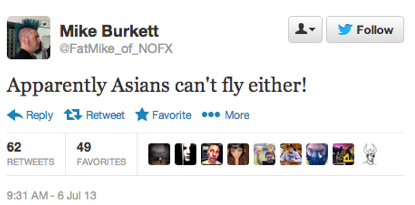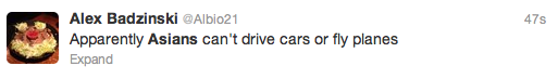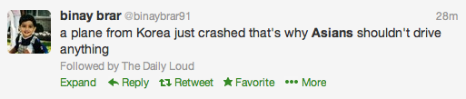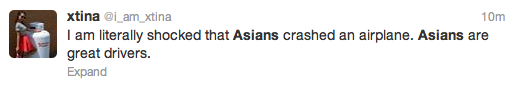 And despite the magnitude of such an incident, leave it to the Twitterverse to rear its ugly head, belittling the event to such a small racist-filled laugh-it-off.